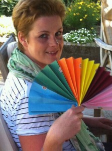 Toch mag ik niet klagen..Ik heb nog energie genoeg, nog niet overgegeven of andere nare toestanden meegemaakt. Het gaat allemaal best prima. En dat kan natuurlijk ook niet anders als je zo’n lief nichtje hebt als Mijntje die in alle vroegte al een waaier heeft gemaakt gisteren en op de post heeft gedaan om mij wat verkoeling te bieden..