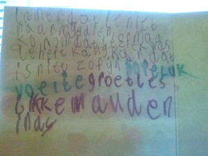 En dan ook nog zo’n mooie kaart krijgt van mijn andere drie nichtjes Jikke, Maud en Indy.